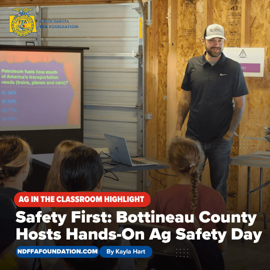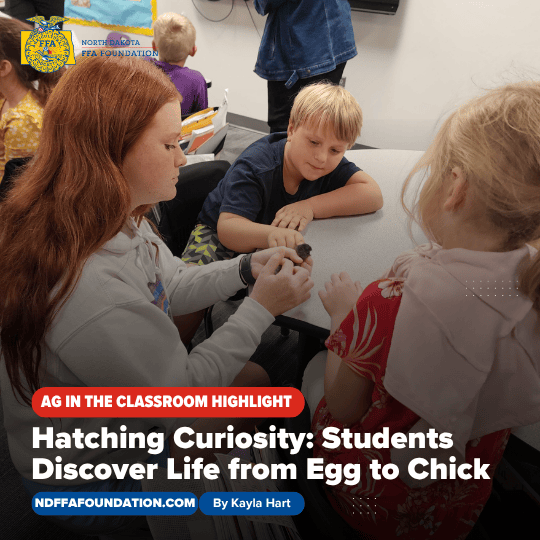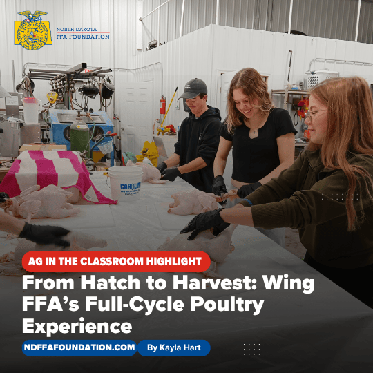 The ND FFA Foundation is dedicated to supporting agricultural literacy through leadership and real-world learning experiences. With support from the North Dakota Department of Agriculture’s Ag in the Classroom grant program, students at Wing High School led a full-cycle broiler chicken project that combines animal science, recordkeeping, facility setup, and food processing into one comprehensive learning experience.